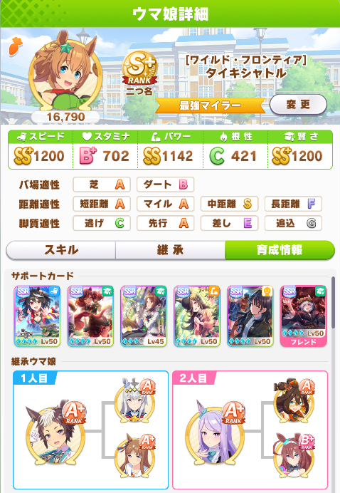 タイキシャトルの能力 タイキシャトルの所持スキルには逃げに向いたものが多いため、今回は作戦:逃げ用の育成について解説します。 まず、タイキシャトルの適性やスキルをおさらいします。 基本能力